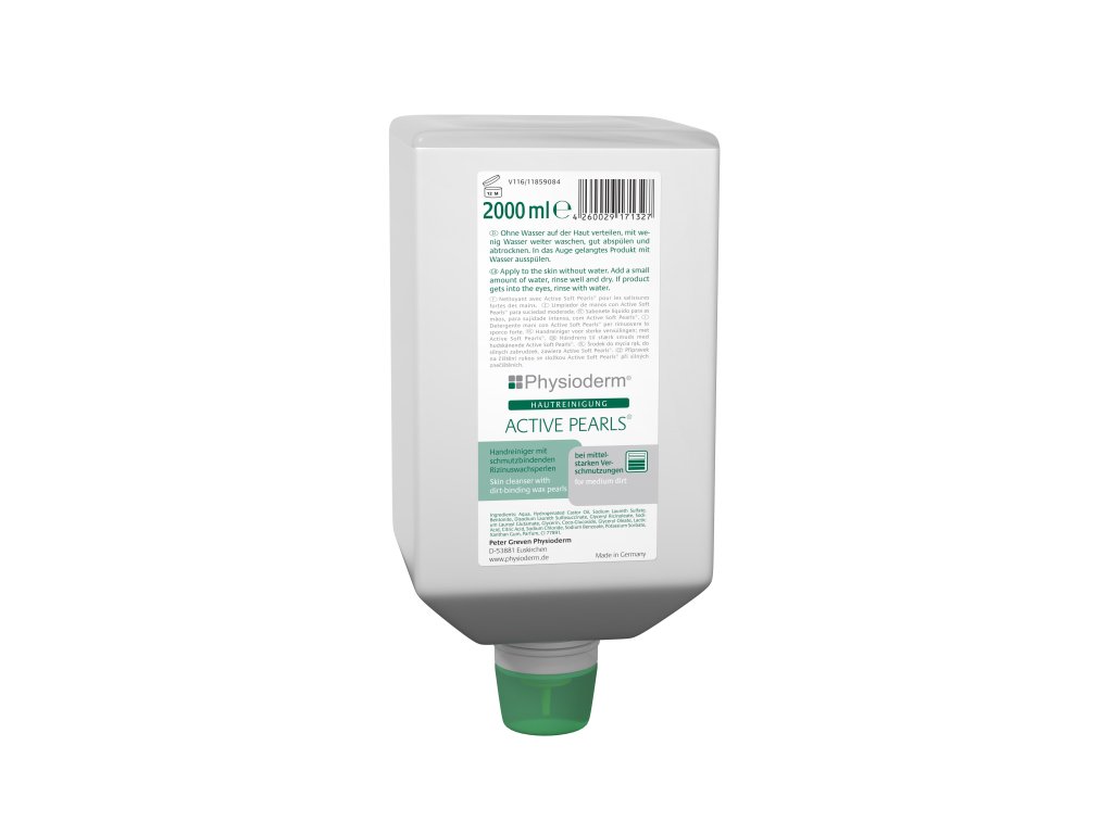 PHYSIODERM® ACTIVE PEARLS® je dostupný v praktické 2000 ml stlačitelné láhvi, která je kompatibilní s dávkovači řady VARIOMAT.