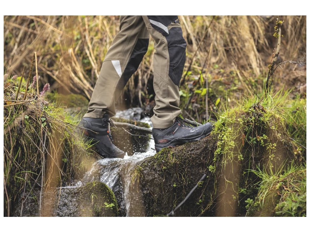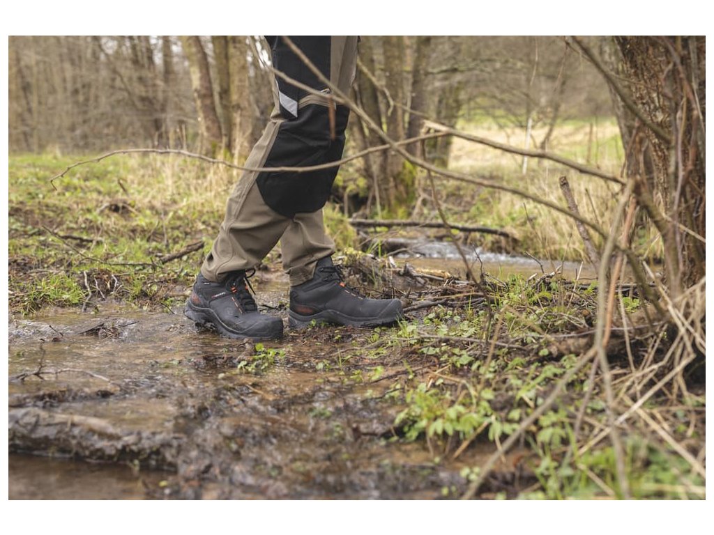- voděodolný celokožený jazyk s vyztuženým jazykem z textilie, který zadržuje nečistoty a tekutiny
