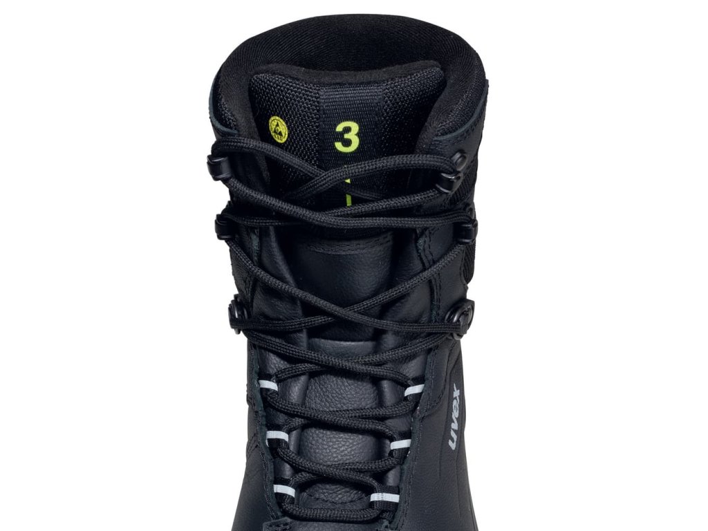 Pracovní obuv uvex 3 nabízí extra široký tvar pro pohodlné nošení a je vybavena systémem šněrování uvex lacelock, který je odolný proti nečistotám a umožňuje snadné zavazování.
