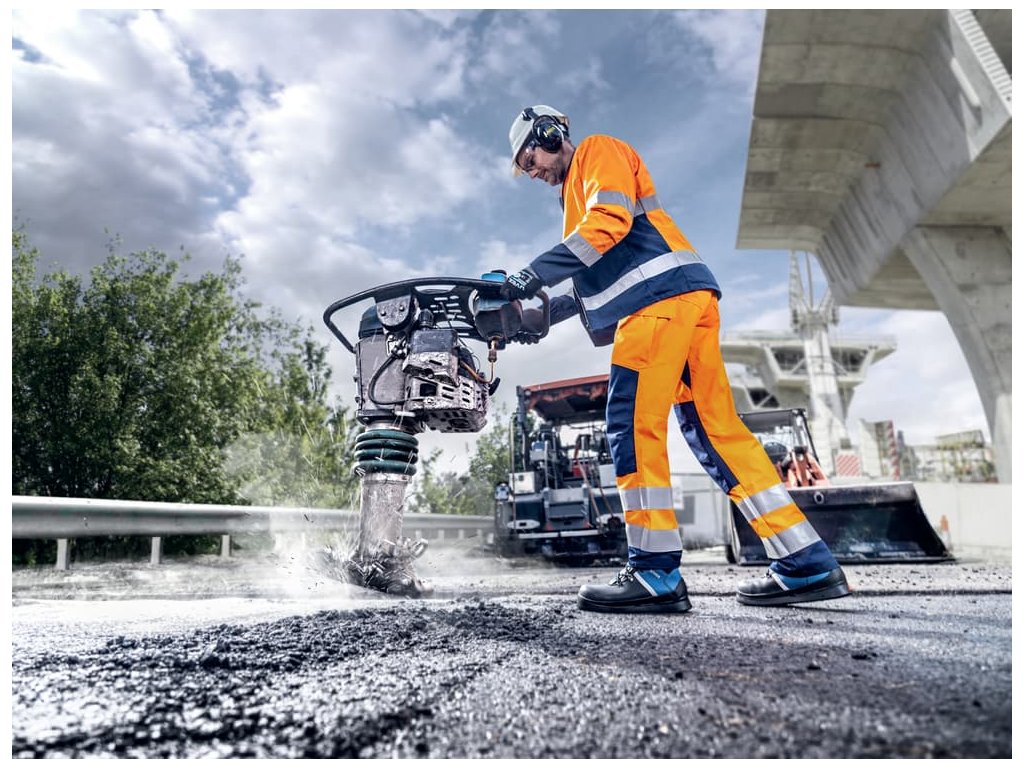 Pracovní obuv navržena pro extrémní tepelné podmínky při pokládce asfaltu.