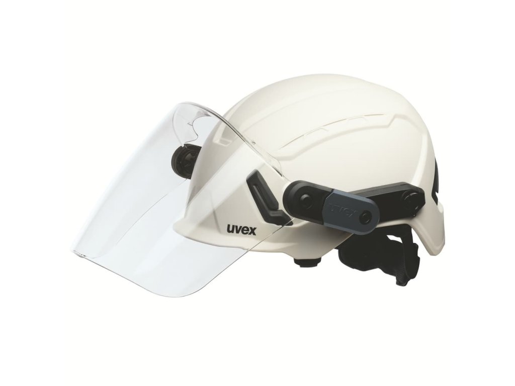 Štít lze snadno připevnit k ochranným přilbám řady uvex pronamic pomocí předmontovaného adaptéru.